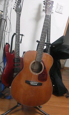 ミニアコ手放して変わりに買ってきたYAMAHAのアコギ、こうして写真にしたらなんだかすご~~くみすぼらしい?って言うか何と言うか?でも現物は良い色してるし音も気に入ってるしボディも若干小さめで自分には丁度良いと思っている。ちょっと面倒だけどもう少し弾きやすくするために弦高を少し下げようと思う。