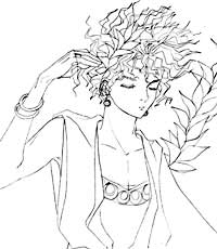 えぇ、これな〜〜〜んも考えていなかったんだよ。頭真っ白でぼ〜〜〜っと髪の毛描いて居たらこうなっちゃったんだよ、でもまっこれも有りか!?って事でそのまま作っちまいました。ついでに言えば背景はこんなに暑苦しいんじゃなくて「ブドウのツル棚の下でそよぐ風を感じている」だった(笑
