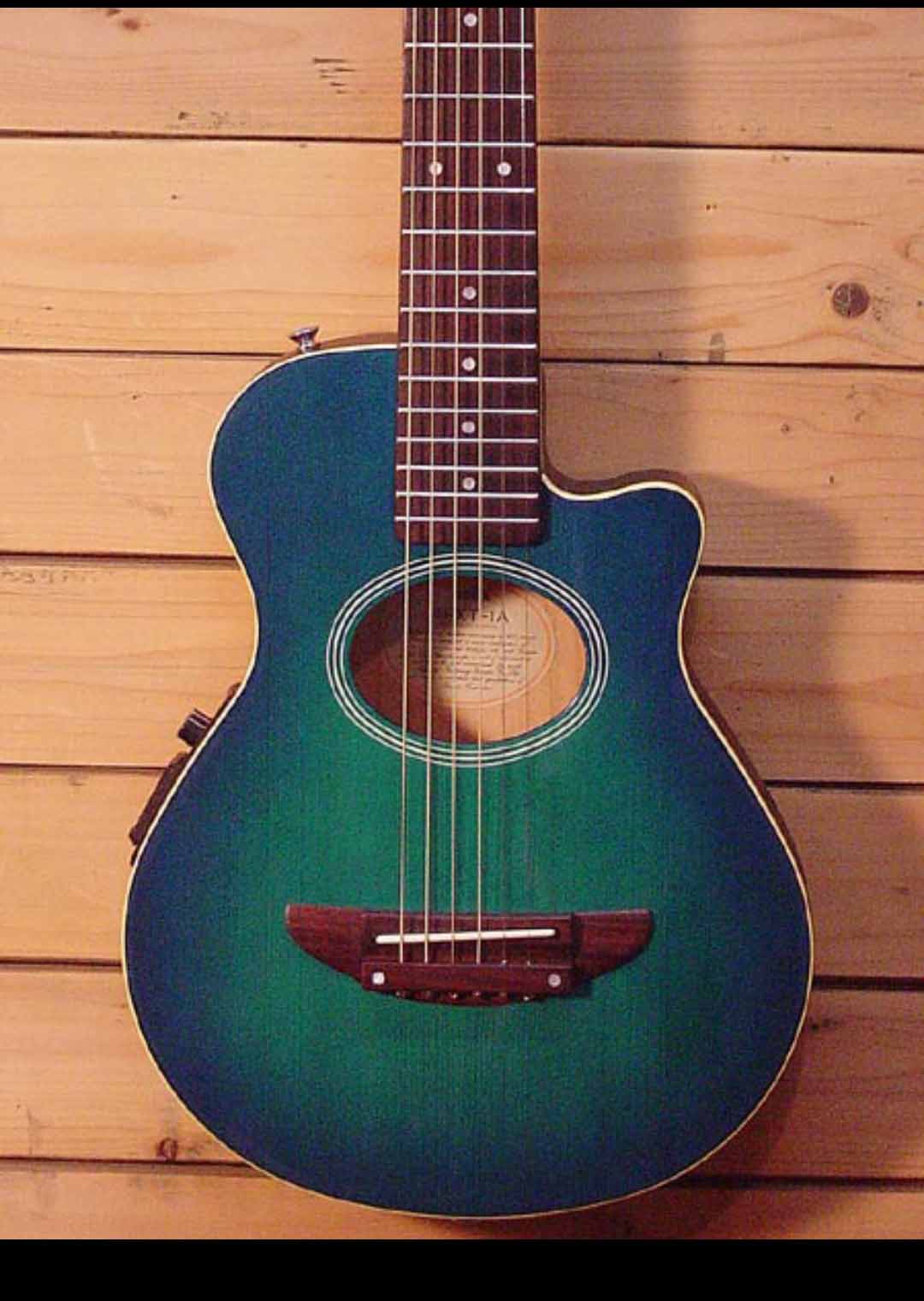 YAMAHAのミニアコギ、これって何年前に買ったっけか??写真の色よりずっと綺麗なブルーで、トラがみつぐの為に買ってくれたもの。